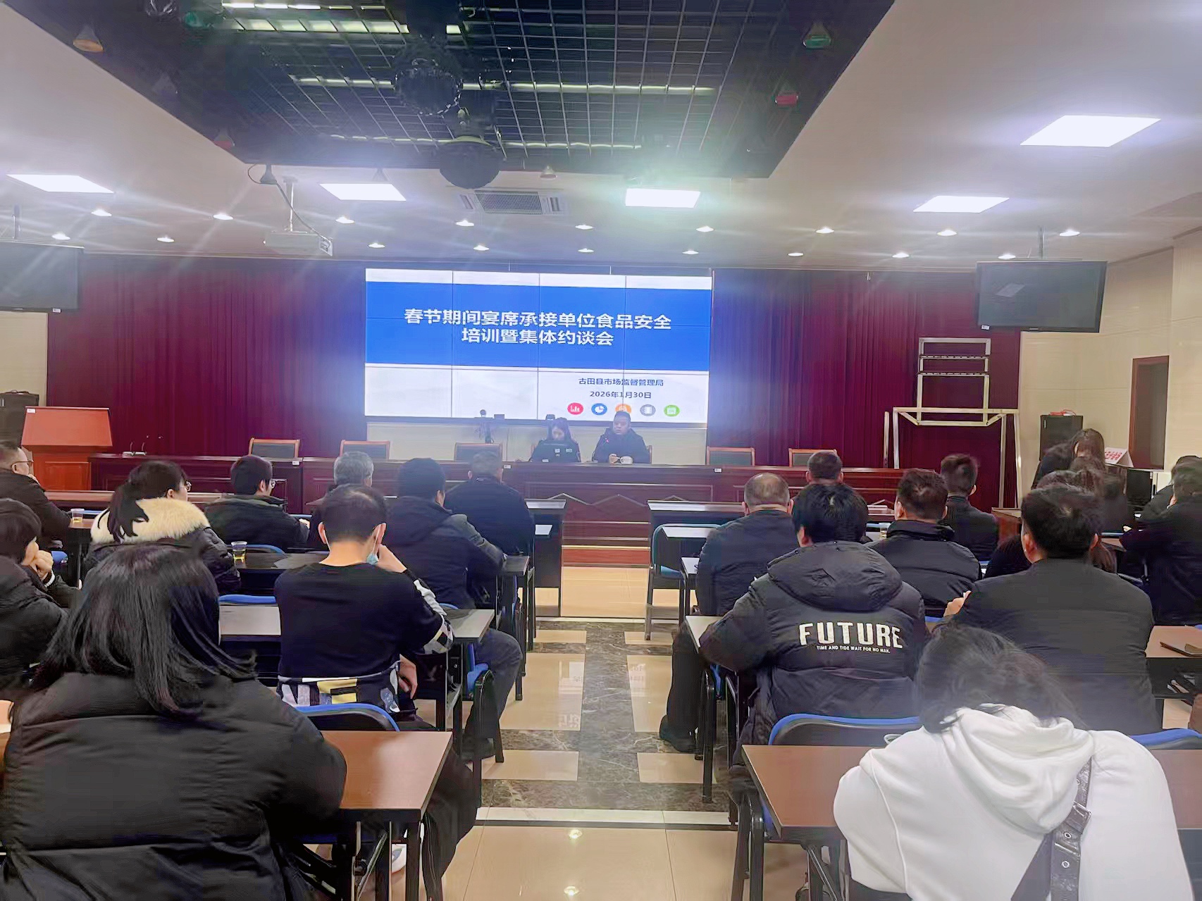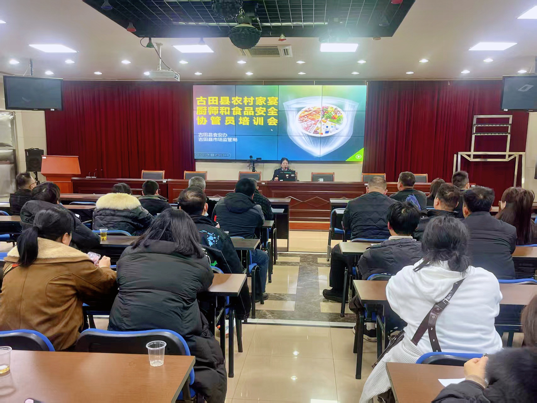 春节将至,年味渐浓,集体会餐、宴席宴请进入高峰期,为压实食物平安各方义务,发生食物平安群体性事务。近日,古田县市场监管局结合古田县食安办细心组织召开2026年春节期间宴席承办单元、农村家宴厨师食物平安约谈培训会。各乡镇(街道)食物平安协管员等共计75人加入培训。
