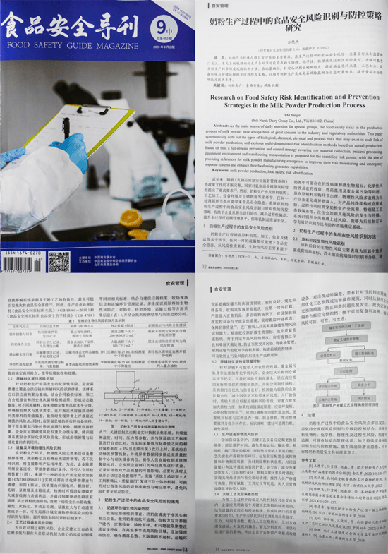 那拉集团台艳杰论文登《食物平安导刊》谈奶粉